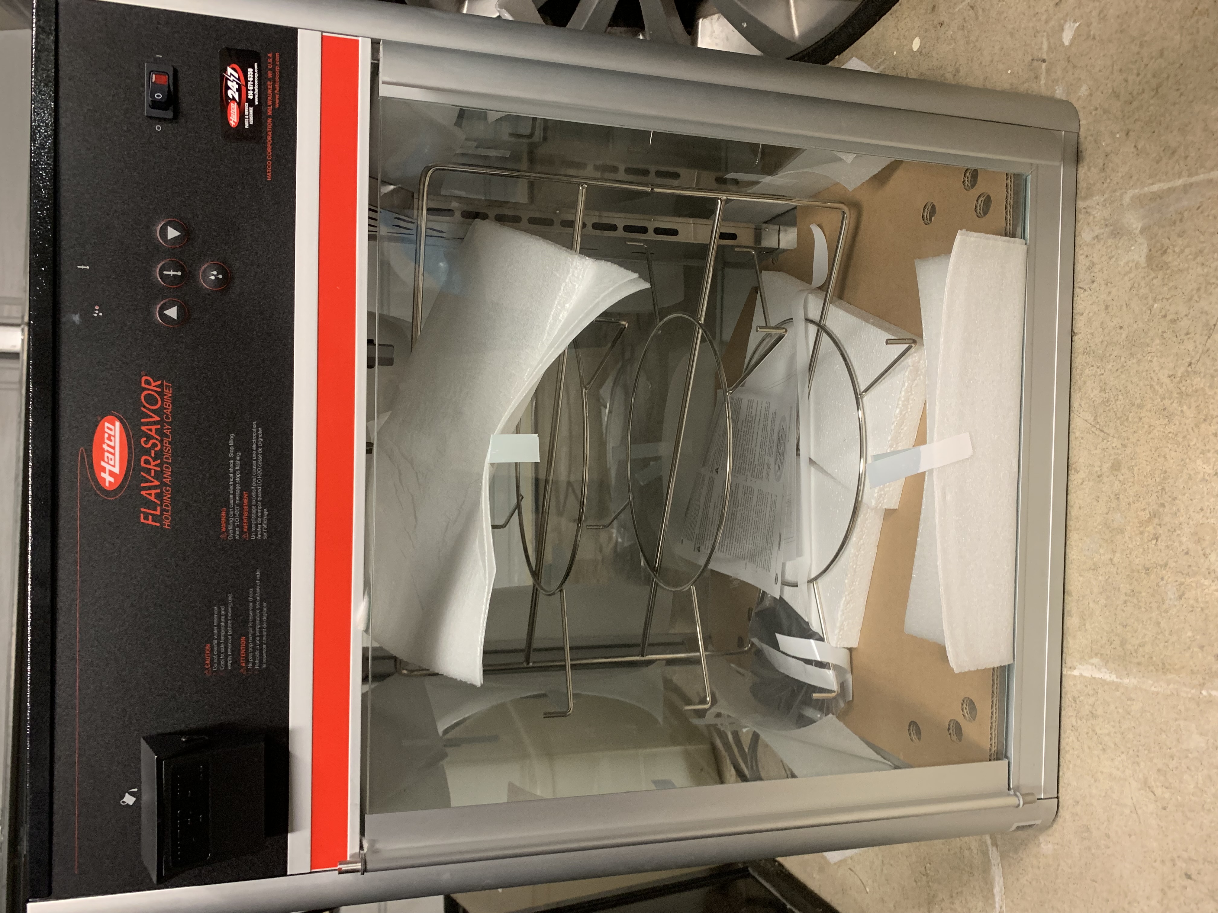 I have a 3 tier Hatco pizza warmer for sale. It was purchased new a year ago and was never used in my restaurant. Purchase price was $3,300. It is still sealed and never used. It does not have the original box(had to remove it for storage purposes.). On imperfections are some slight scratches on top. I can send pictures if requested. $2,800.
