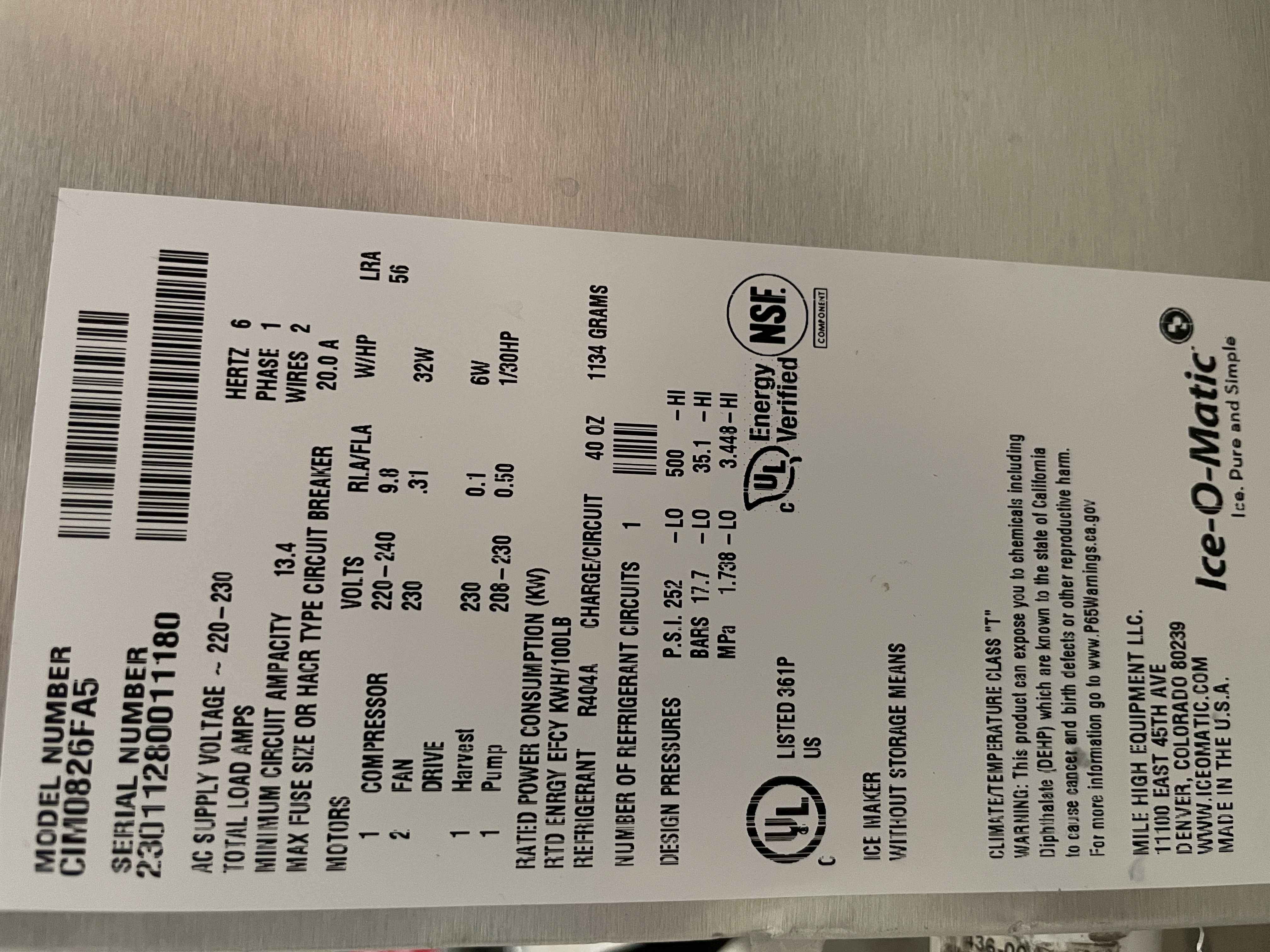- ICE O MATIC ICE MAKER 896 lbs