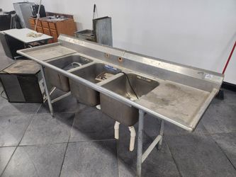 Commercial Restaurant 3 Compartment Sink 3 Well Stainless Steel NSF Overall 90.5" x 27" x 40" Compartments 16" x 20" x 12" Drainboards 23" x 16" No faucet $800 or best reasonable offer CASH ONLY Pick up in Carpentersville Illinois 60110 #3compartmentsink #restaurantSink #warewashing #restaurantEquipment ##washrinsesanitize