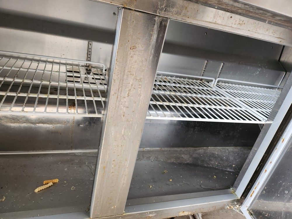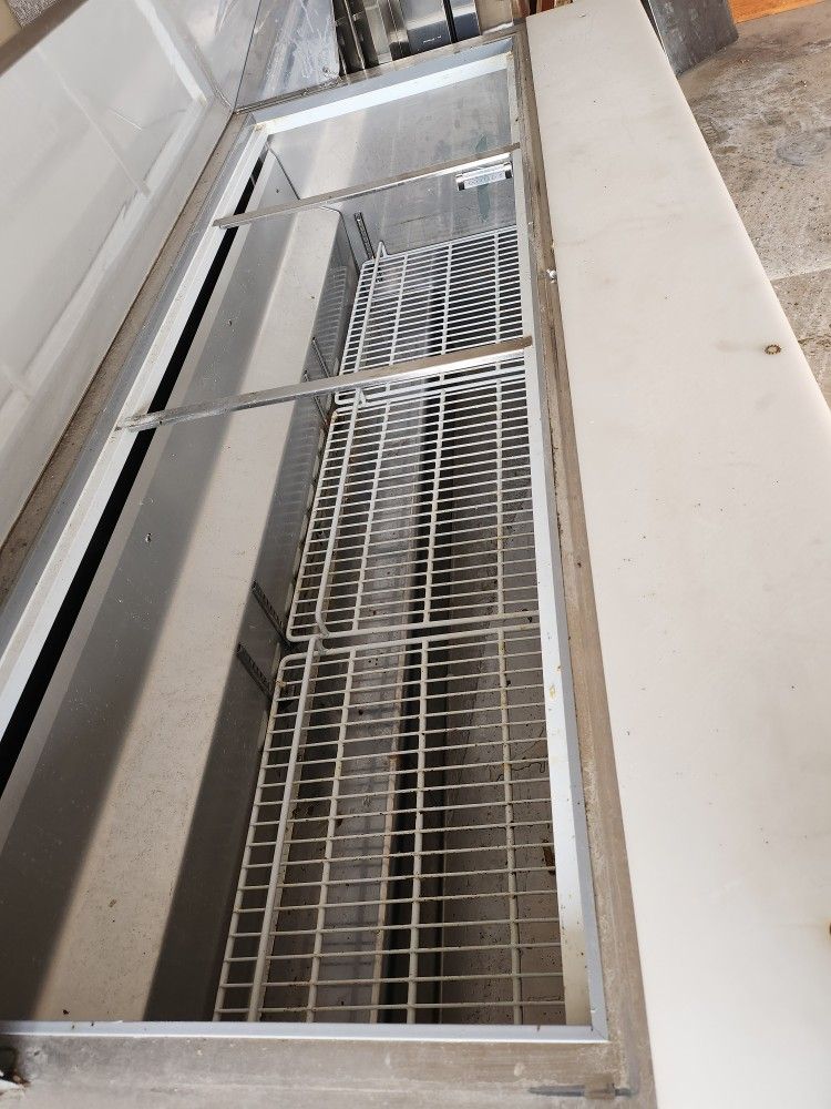 6ft Salad/ Sandwich Prep Table model SPS-72-18 ■ 70.5" L x 29.5" D x 42.25"T ■ 15.5 cubic feet of storage ■ 115V/60Hz/1Ph/8.6A ■ Electronic control system ■ R134A refrigeration system ■ Holds 33°F to 41°F (0.5°C to 5° C) ■ Heavy duty PVC coated shelves 1 per door ■ Full Length Cutting Board Included ■ Heavy-duty casters included ■ Self-Closing Doors with 90 degree stay open feature ■ ETL Certified ■ Conforms to NSF-7 STD Over $3K new Asking $1900 for one that was used for less than a year and looks and works like new. Cash and carry only Pick up in Huntley Illinois 60142